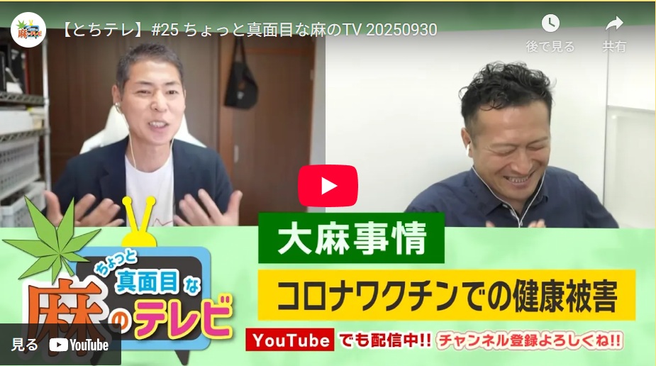 9月30日深夜とちぎテレビより「ちょっと真面目な麻のTV」第25回が無事放送された。